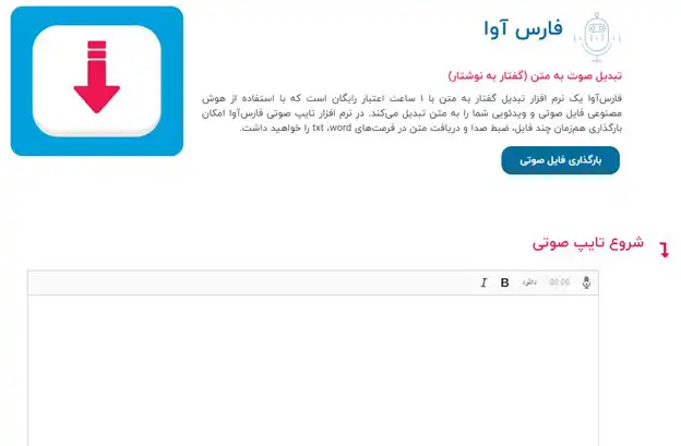 نرم افزاری ایرانی که با استفاده از هوش مصنوعی، فایلهای صوتی و ویدئویی شما را به متن تبدیل میکند. این ابزار امکان بارگذاری هم زمان چند فایل، ضبط صدا و دریافت متن در فرمتهای txt و word را فراهم میکند.