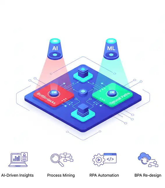در این مرحله ابزارهایی مانند Process Mining و Task Mining به تصمیمگیری دقیق کمک میکنند.